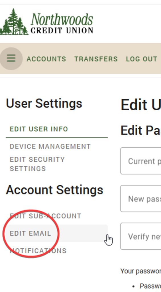 Within the Settings menu, choose Edit Email.